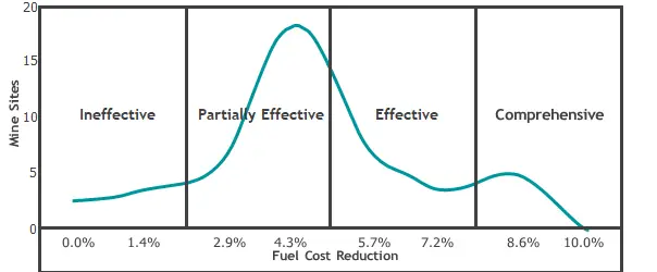 Once sufficient data is obtained from your new fuel management system, you can begin benchmarking to drive performance improvement. FluidIntel has considerable data across numerous metrics for managing fuel and lubricants on mine sites. All our benchmarking data is anonymous, so one mining company cannot identify another company’s data. In addition to benchmarking quantitative data across specific KPIs, FluidIntel also provides a qualitative bell curve to help companies in the planning stages of implementing a fuel management system understand their current position (see Figure 1).